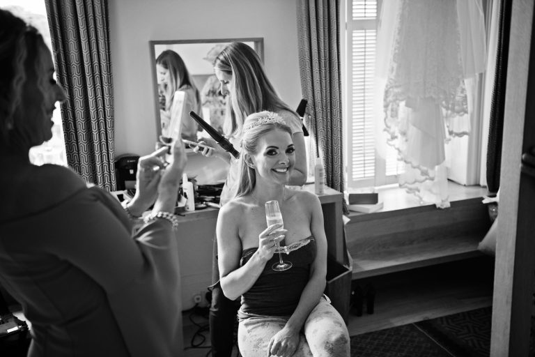 I began the day with Jamie‑Lee in the bridal suite as she finished getting ready. Those early moments — calm, focused and full of anticipation — are always some of my favourites to photograph. From there, the day unfolded naturally.