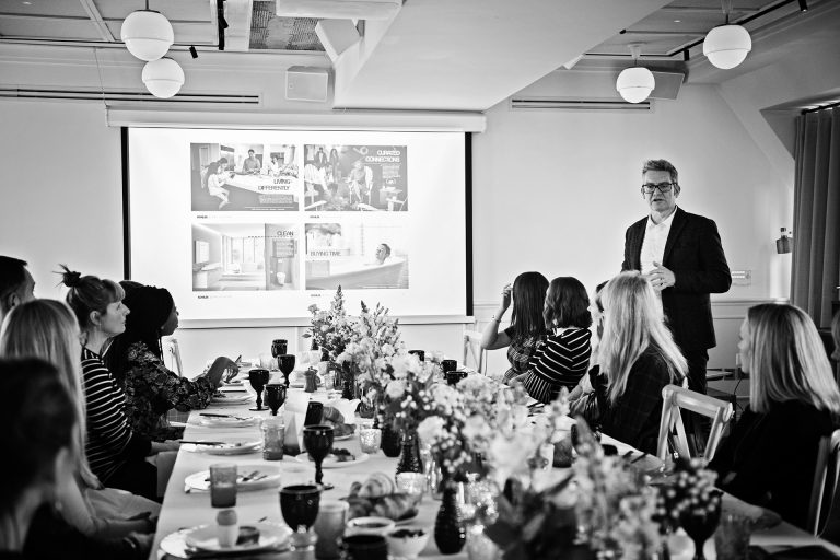 It is with this kind of thinking that Kohler invited leading bloggers and social influencers to a network breakfast at Mortimer House in London. The intention for Kohler to allow their guests to visibly see and touch Kohler’s products, meet the designers behind the products and interact with other influencers that will shout out loudly to a wide audience ultimately promoting the Kohler brand. I was there of course to photograph the breakfast so that they could have high quality images, turned around and edited the same day, so that Kohler could use the photographs to further promote the networking event.